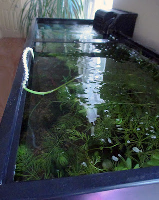 I couldn't leave the lid of the tank open, and turns out the flower is supposed to stay emersed until it forms seed (several weeks)