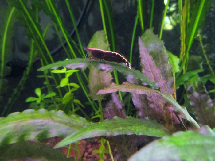 The three malaya shrimp are getting very dark in color. I don't know if that means something about their age or health...