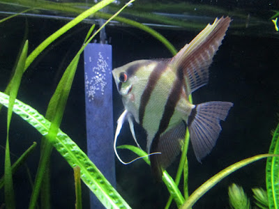 It's probably the extra feedings, and richer food, that's prompted her to. Hard to give the younger angels three feedings a day without Miss Beautiful getting extra. I've found that half a cube of frozen food is too much- they all get plump bellies and there's still bits floating around the tank (kuhlis are feasting). That's even if I give the tiniest bits in strained slurry to the guppies and minnows. I'm going to thaw just a third or quarter of a cube next time.